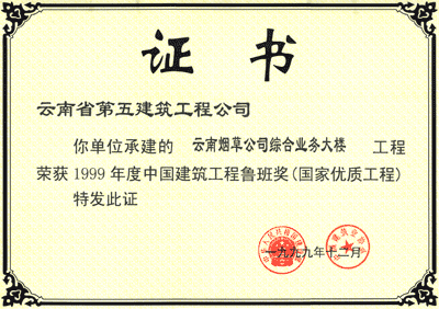美亞大廈魯班獎狀